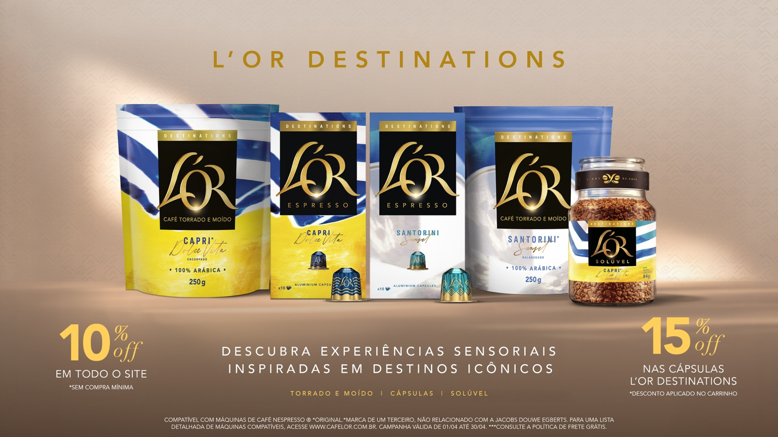 Adicione mais alguns reais ao seu carrinho! Em compras iguais ou acima de R$ 50, você pode participar da promoção. Mas atenção: é necessário se cadastrar para concorrer! Não perca a chance de viver uma experiência incrível com L'OR. Cadastre-se e participe!